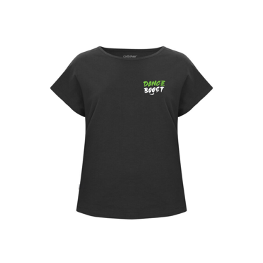 Naisten paita väljässä mallissa, joka laskeutuu kauniisti. Lyhyet holkkihihat ja koristeellinen venepääntie kanttauksella. Ihanan pehmeä ja rento t-paita niin arkeen kuin treeniin.